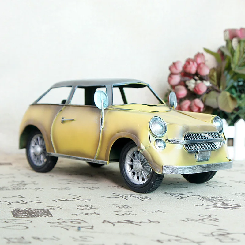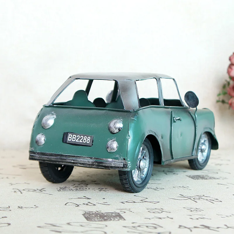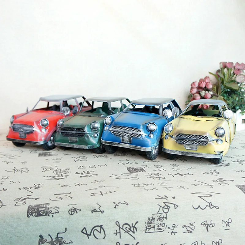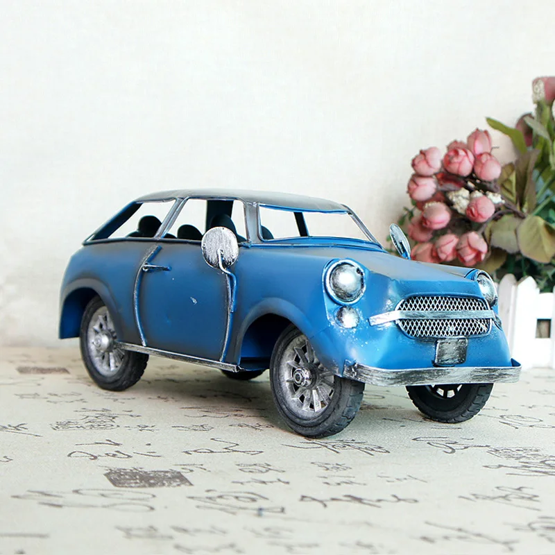 Promo 27CM Multicolor Metal Car Model Desk Decoration Accessories Vintage Car Figurines Children Toys Bir